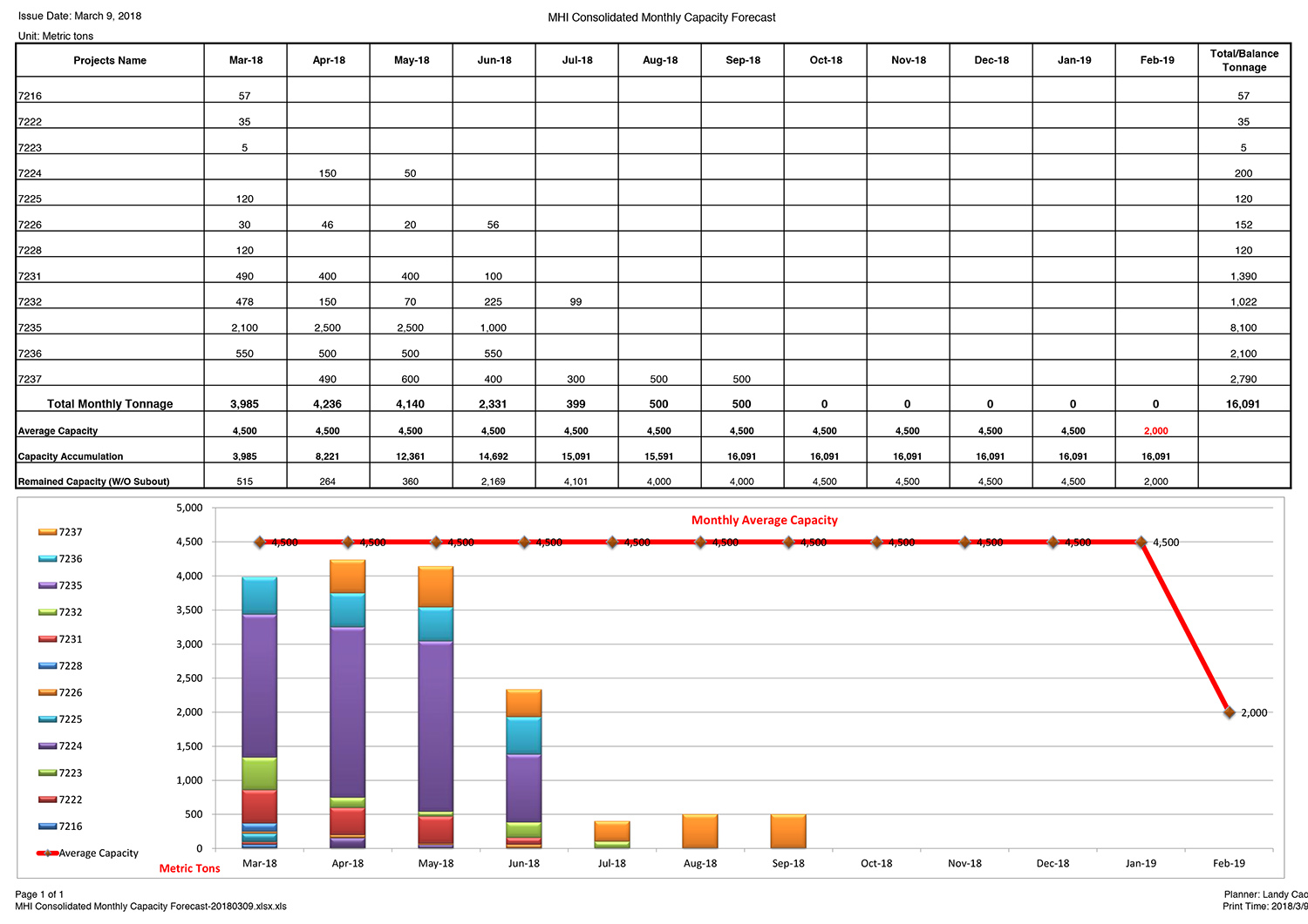 Modern Group produces a wide range of structural steel for various industries. Heavy and oversized projects are best suited for our production flow, but we cannot always see what is coming next. The graphic on the right shows our historical output percentages. Modern Group can employ 1,400 fabricators on the shop floors between the two business units, but the actual shop loading adjusts this number.
